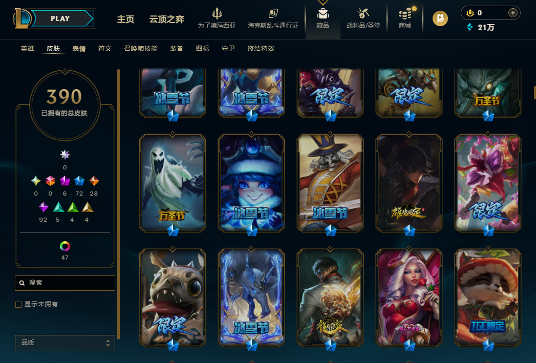 500P❤️钻石体验号❤️至臻T1塞拉斯❤️龙虾龙刀❤️摄魂薇恩❤️霸天螳螂❤️神龙李青❤️等精美皮