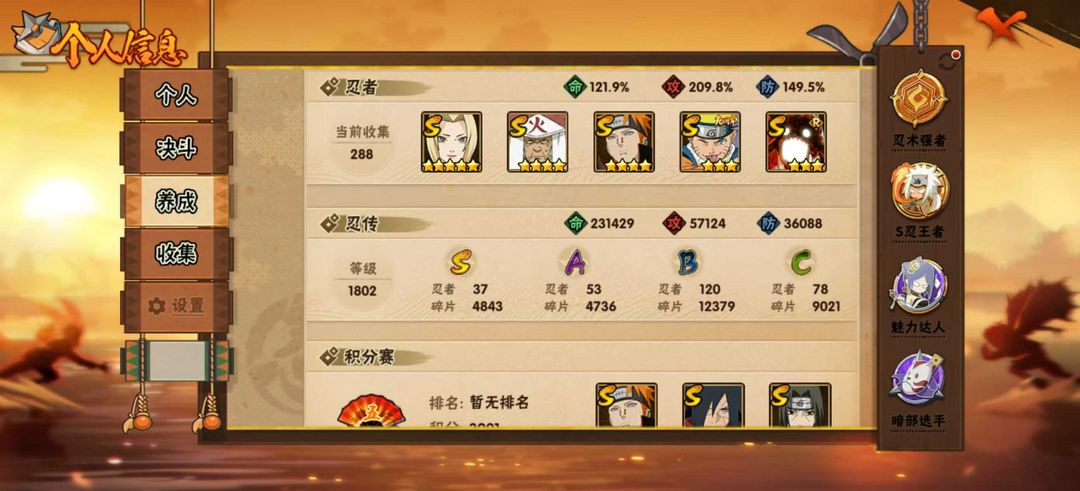 49s69A,330+忍者,2500万+战力,十尾带土,马班,青年鬼鲛,漂泊带土五影班等超多热门忍者