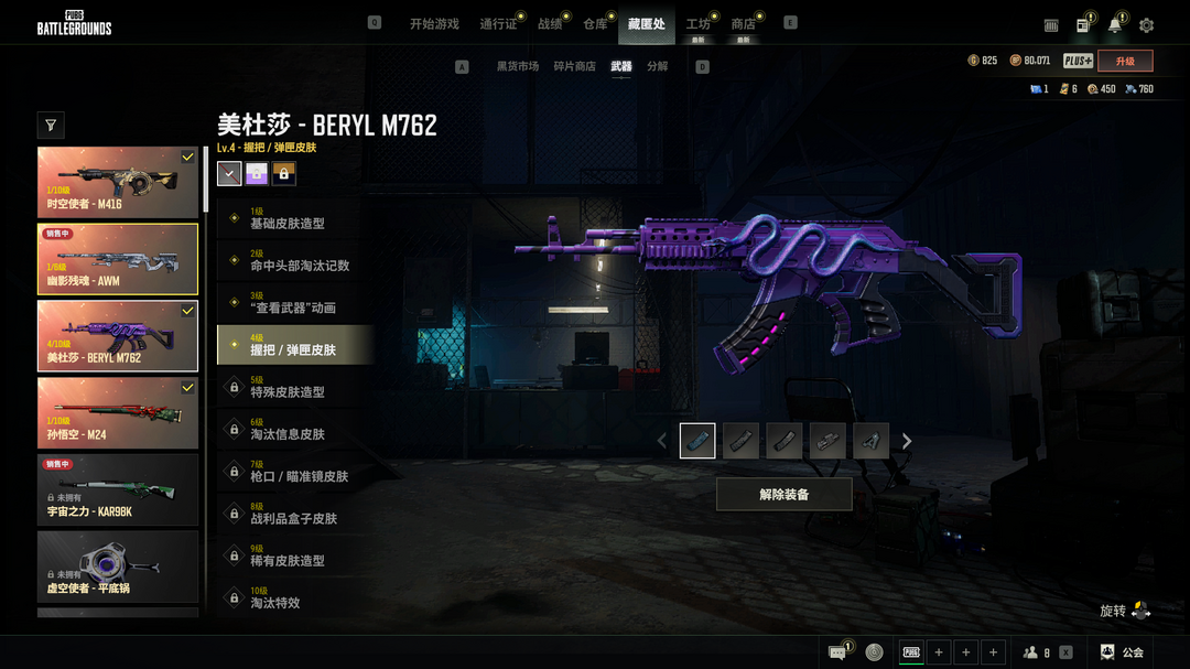 异色美杜莎M762三级√布加迪跑车√发光手臂√黑鬼√工装夹克√M416√M24
