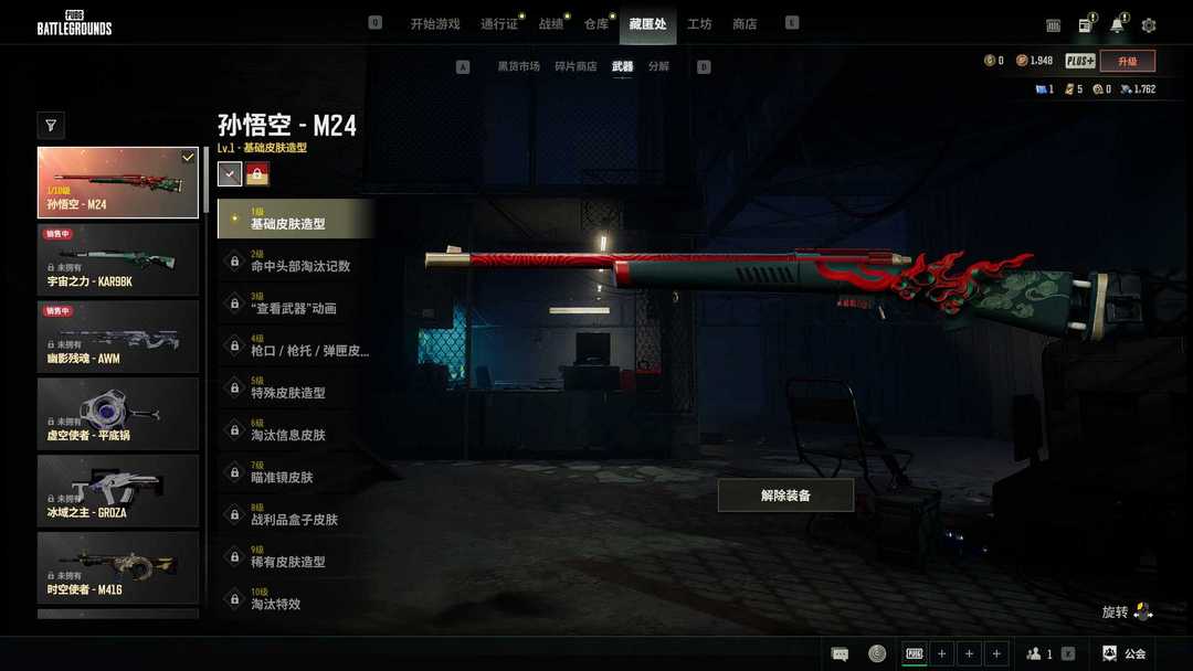 夺目寒光SKS✨幸运骑士M24✨无拘来世DP-28✨猩红猎手套✨已购PLUS+