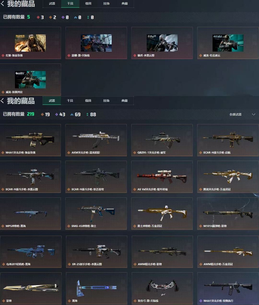 【青铜II】黑波25套西部套显卡爪夜刃镰天玄刀/猫猫混沌紫金双城狂徒侦察莲花幻影离子大狙天界鬼魅挂机司马