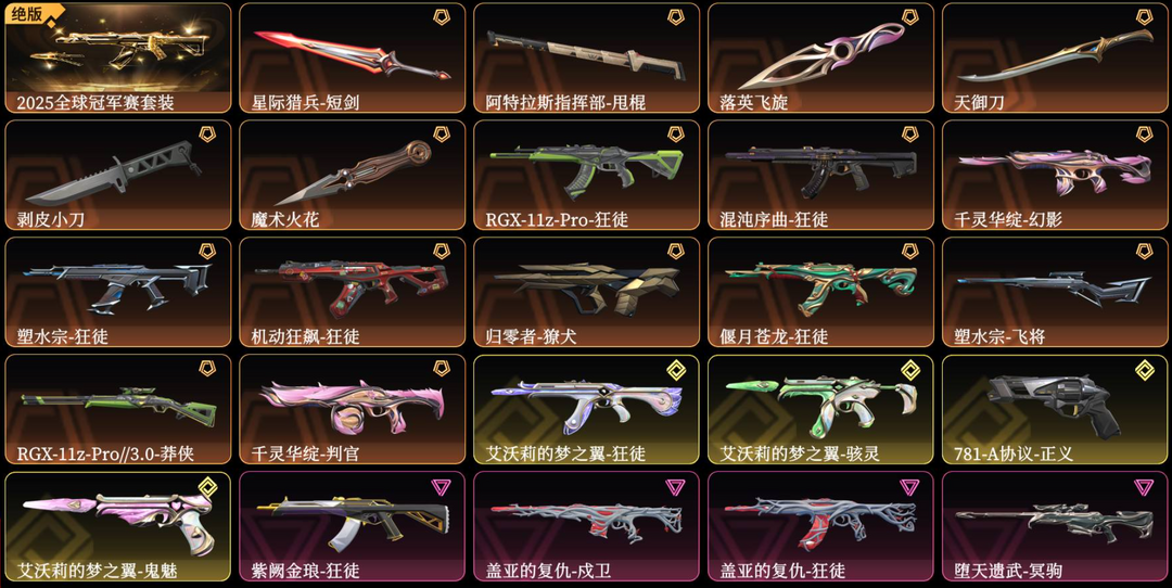【当前段位:黄金I】可排位大库存☆25全球套☆塑水宗☆混沌序曲☆艾沃莉☆超时空☆紫金☆侦查☆RGX☆VCT☆各种散件☆炫