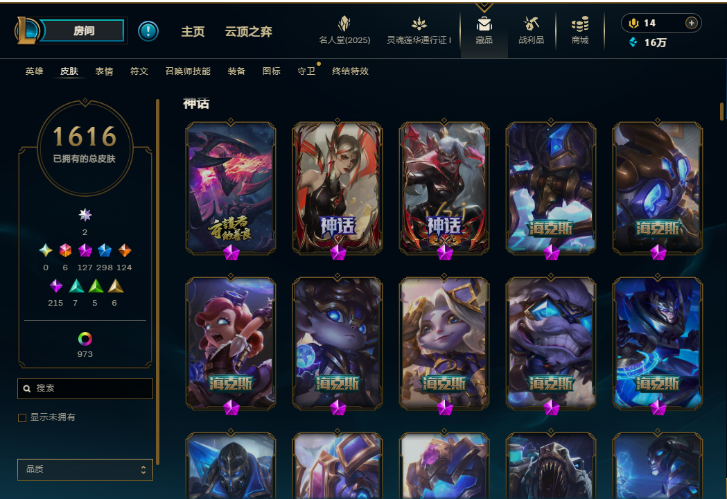 9500皮肤❤️西部魔影❤️全至臻海克斯年限周年❤️国王青年元老莲花