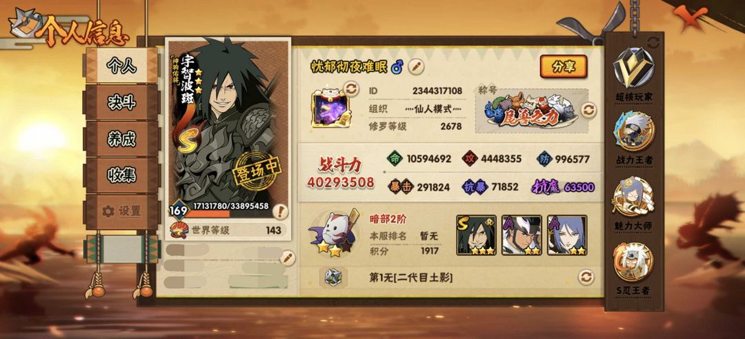 ⭐全忍者⭐全通灵⭐4000W战⭐神驹斑⭐十尾带土⭐神驹阿斯玛⭐漂泊带土⭐六尾鸣人⭐天道超⭐黑绝