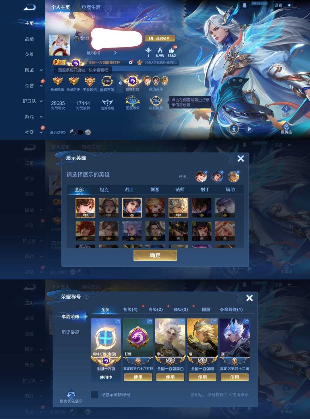 3月正式服 在榜小国标李白 耀 无人敛100%上号 满皮肤 历史三小国标妲己武则天张良