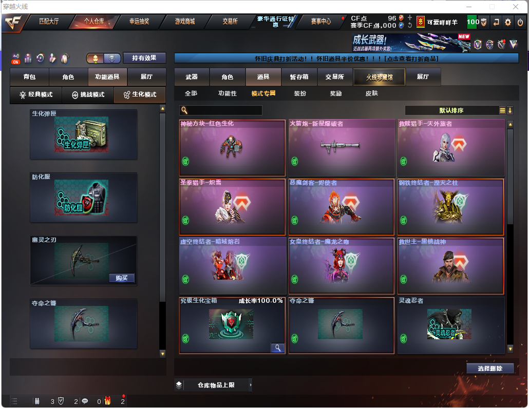 【可排位】生化炽芒蝶刃♉火箭筒♉12个生化皮肤♉斯泰尔毒蜂生存金蚀♉兔囡囡粉鸟♉伪6盘6烈♉满榴弹全鬼不退包挑