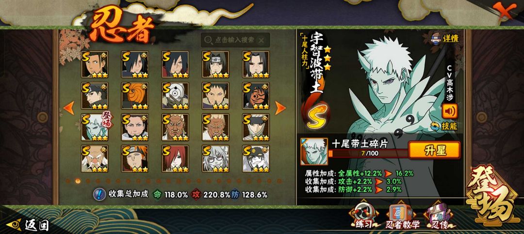 十尾带土❤️晓创生迪达拉❤️神驹斑❤️黑绝❤️340忍❤️准全通全点券a和c❤️2200万