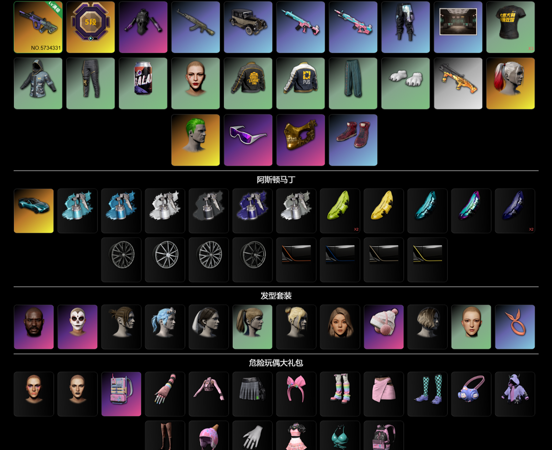 ⑩霓虹AUG⭐小丑女绿头卡崔娜金面滑雪镜黑鬼萨芬裤发光臂白熊脚红鞋危险玩偶套阿斯顿马丁