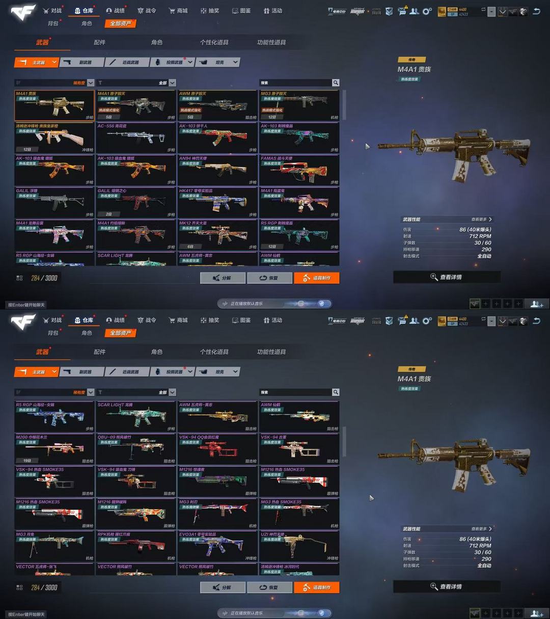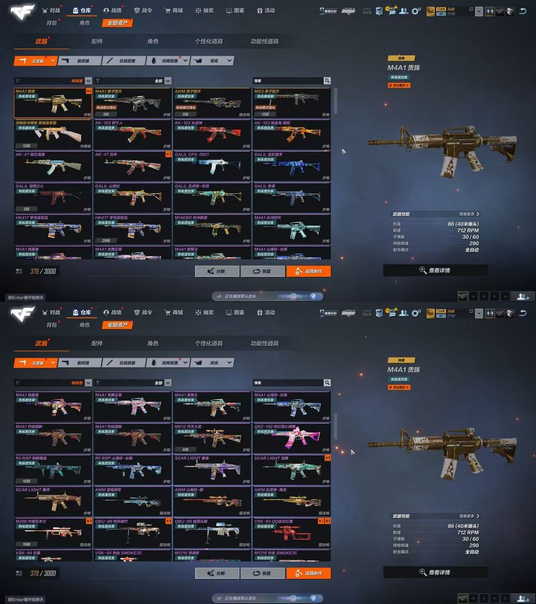 CFHD生化~AK夏日~QBZ樱吹雪~加特林~噬空之灵~陆地之王~裂空之翼~火麒麟~M4A1贵族
