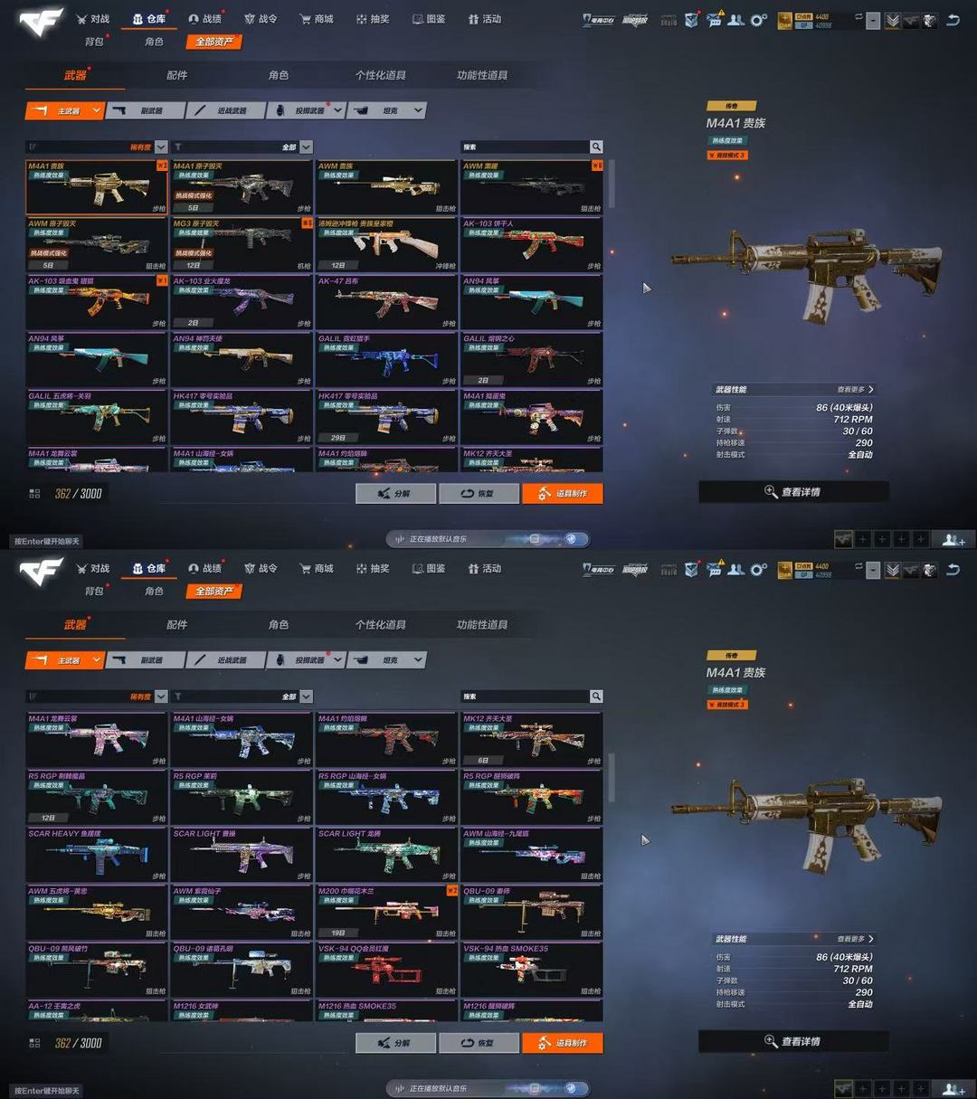 CFHD生化~MG3贵族~钢刃裂魂~噬空之灵~AK47陆地之王~裂空之翼~可排位