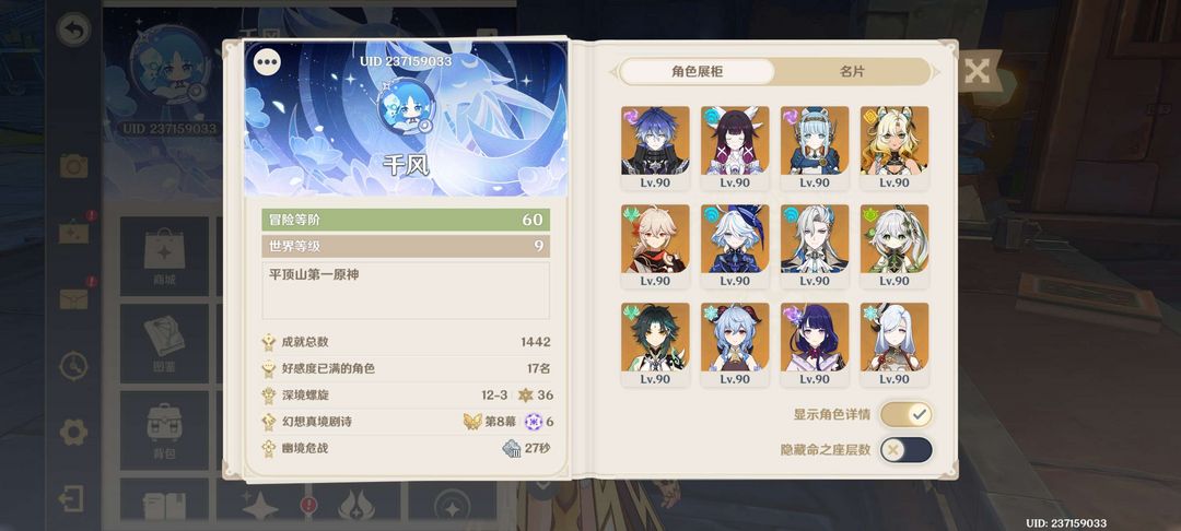 原神成品账号❤️762黄❤️49个五星角色❤️满命希格雯,满命克洛琳德等❤️113个五星武器❤️
