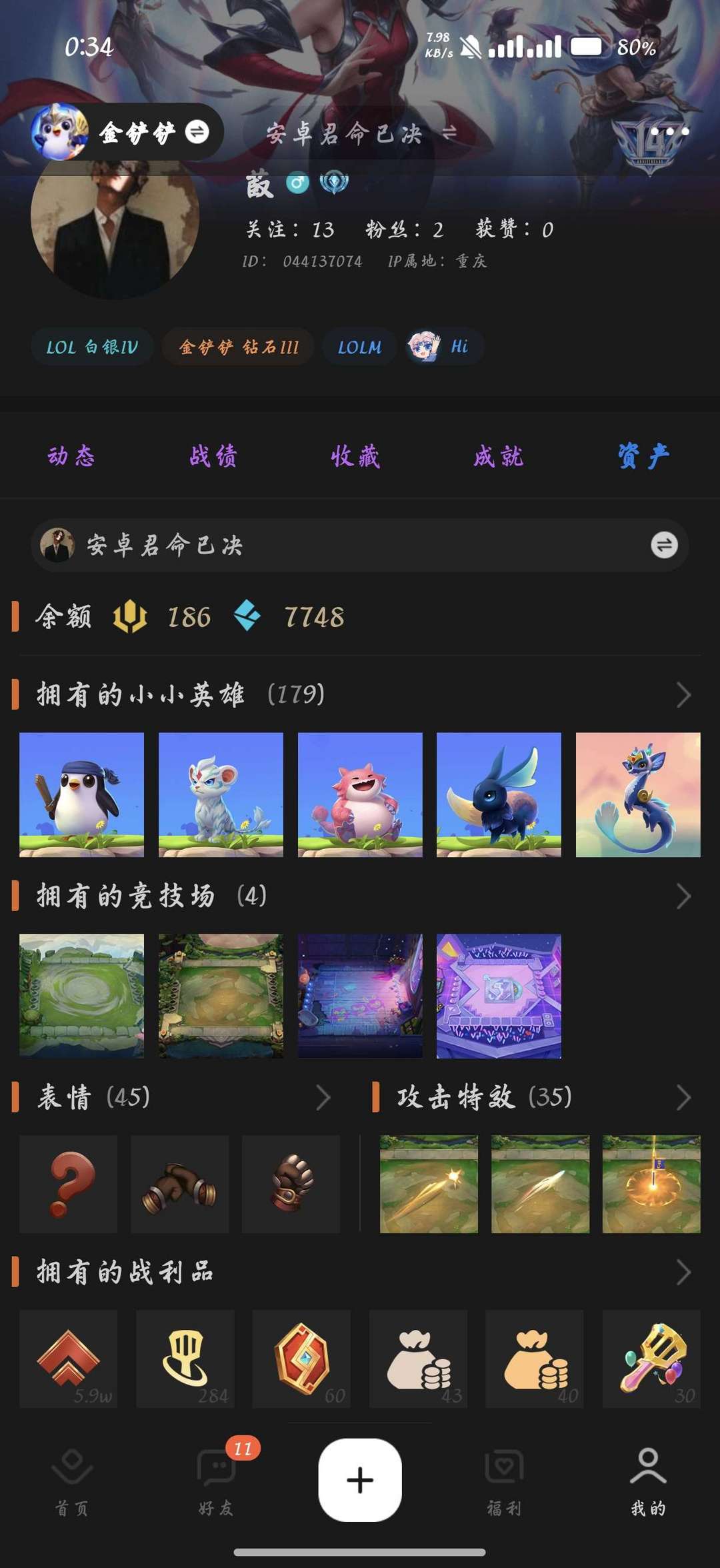 账号V8,图片都是真实截图,阿狸等小小英雄还有棋盘皮肤