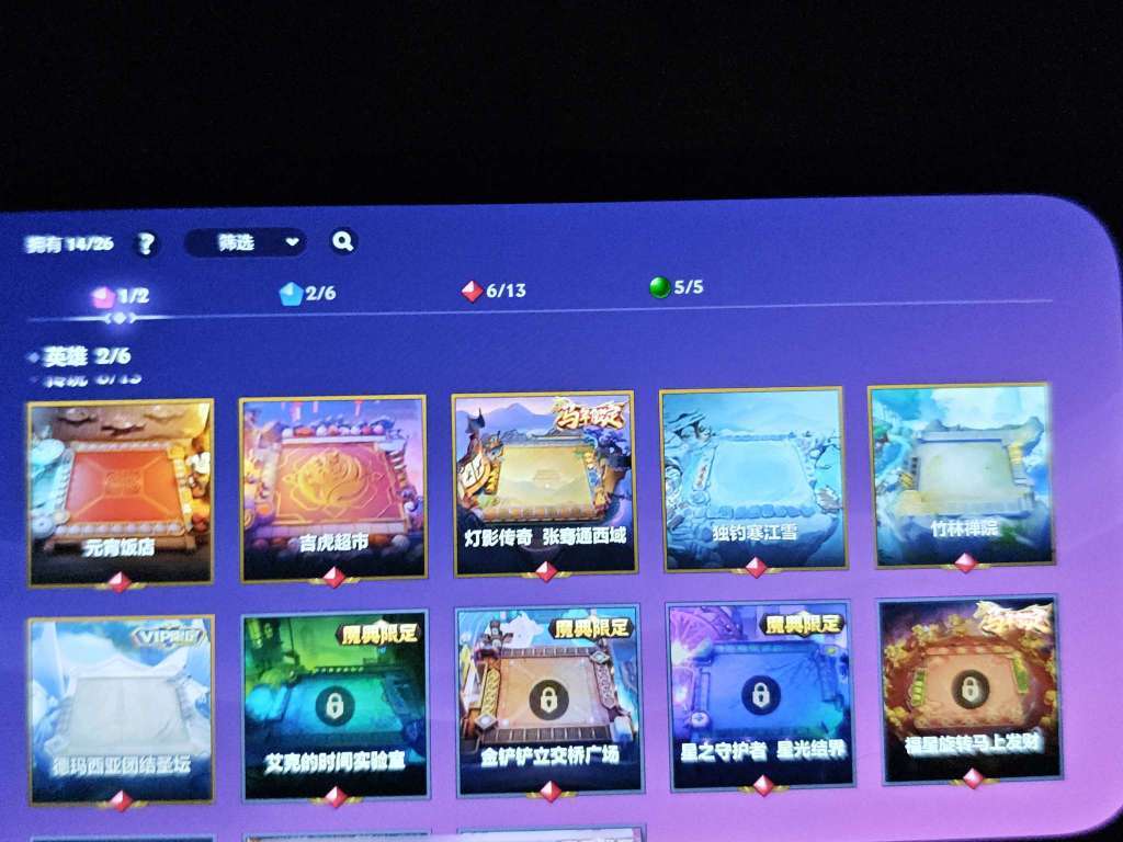 英雄竞技场金枝玉叶鲤宝池、月宴,传说竞技场元宵饭店、吉虎超市、张骞通西域、独钓寒江雪、竹林禅院、德玛