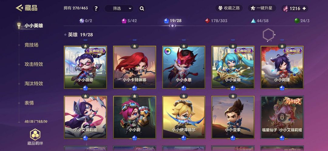 有一个战令小小英雄两到三个三星小小英雄两个决斗场四个或者几个忘了攻击特效