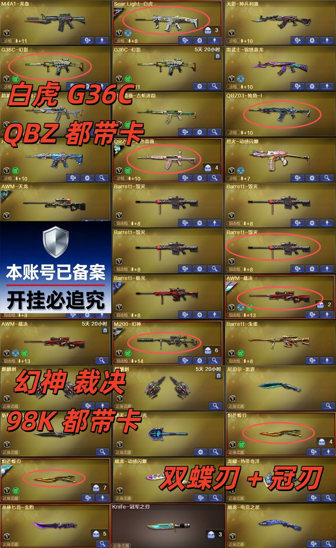 【不可排位】白鲨白虎/裁决巅峰带卡/幻神AG24❤传说影煞/G36C❤全满音效/白虎星神/蝶刃星霆/满副收