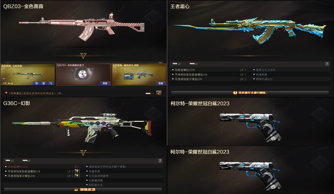 【可排位】枪王4⭐世冠白鲨幻神音效卡丨动感闪耀套装⭐白虎蓝兔朱雀QBZ王者之魄火麒麟百城⭐四防角色可排位
