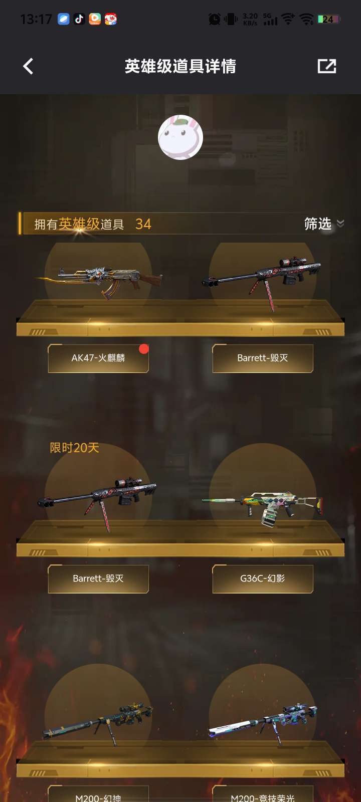 【可排位】幻神、g63幻影、USP雷暴、五烈、竞技荣光套装、网剧冠军套装、关小玉、云悠悠等
