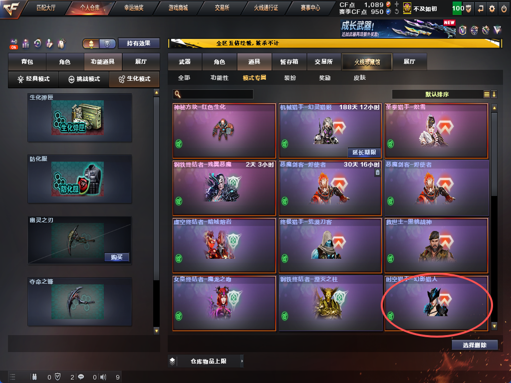 【不可排位】时空猎手✨15个生化皮肤✨斯泰尔蝴蝶小人救世主✨四防生化角色炼狱带皮幻神裁决满榴弹不退包✨无炽芒蝶刃
