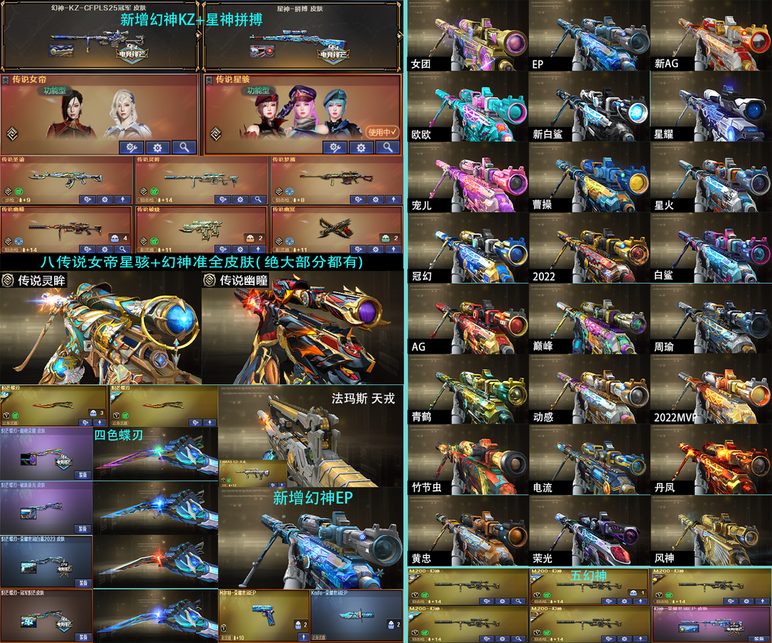 【可排位】传说女帝星骇幽瞳圣谕新KZ幻神准全皮肤满音效❤天戎11色星神黯钢15色QBZ宠儿拼搏冥王❤蝶刃全皮