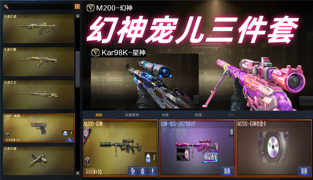 【可排位】M200-幻神音效卡⚡幻神宠儿皮肤❥98K星神USP雷暴套世冠柯尔特金色蔷薇✅生化6烈6炼3盘龙蝴蝶