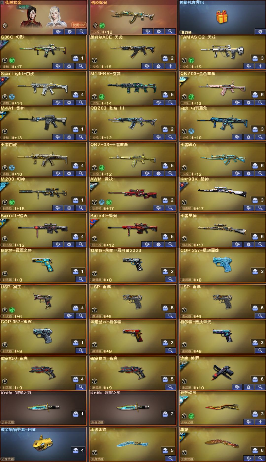 【不可排位】传说女帝三件套冠军之薇刃特❤丹凤幻神音效卡❤星神白虎竞技云悠悠❤6音效鲨臂USP雷暴生化6烈龙蝴蝶枪