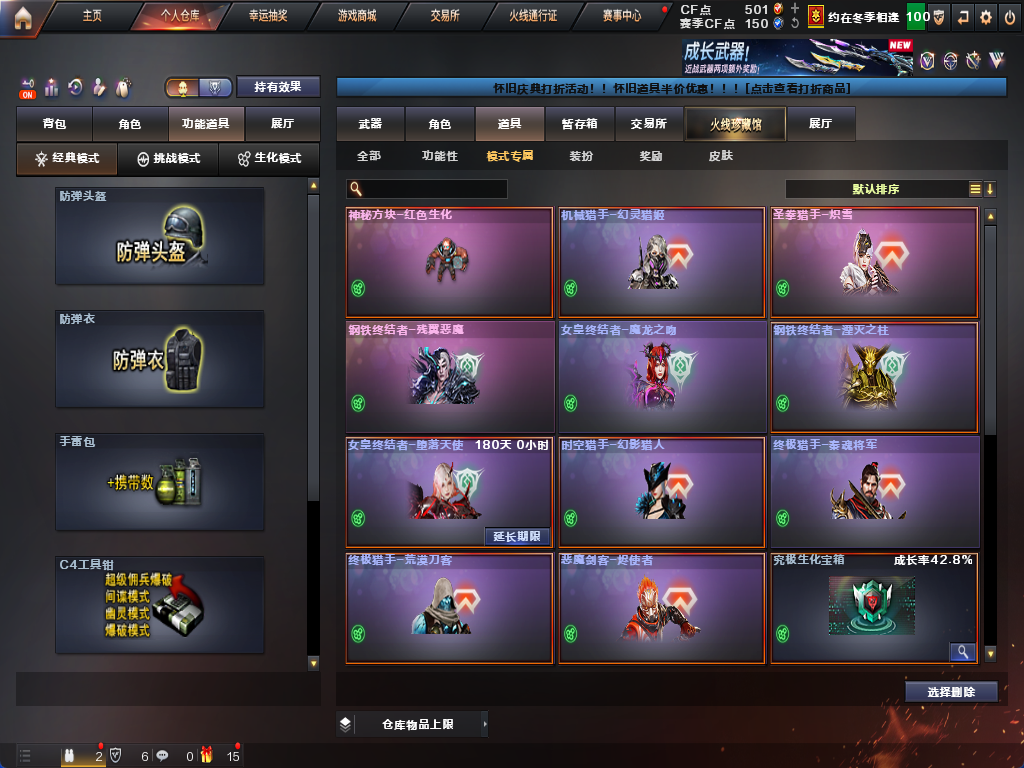 【可排位】生化炽芒蝶刃♉时空猎手♉15生化皮肤♉毒蜂斯泰尔死亡♉星神可排位♉6烈龙♉满榴弹不退包♉无6盘6烈