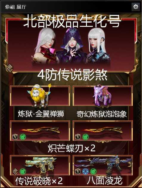 【可排位】金翼禅狮⚡传说影煞⚡2破晓⚡泡泡象⚡八面玲珑⚡6烈6盘斯泰尔蛇影双娇⚡2蝴蝶刀⚡挑战6+9+168