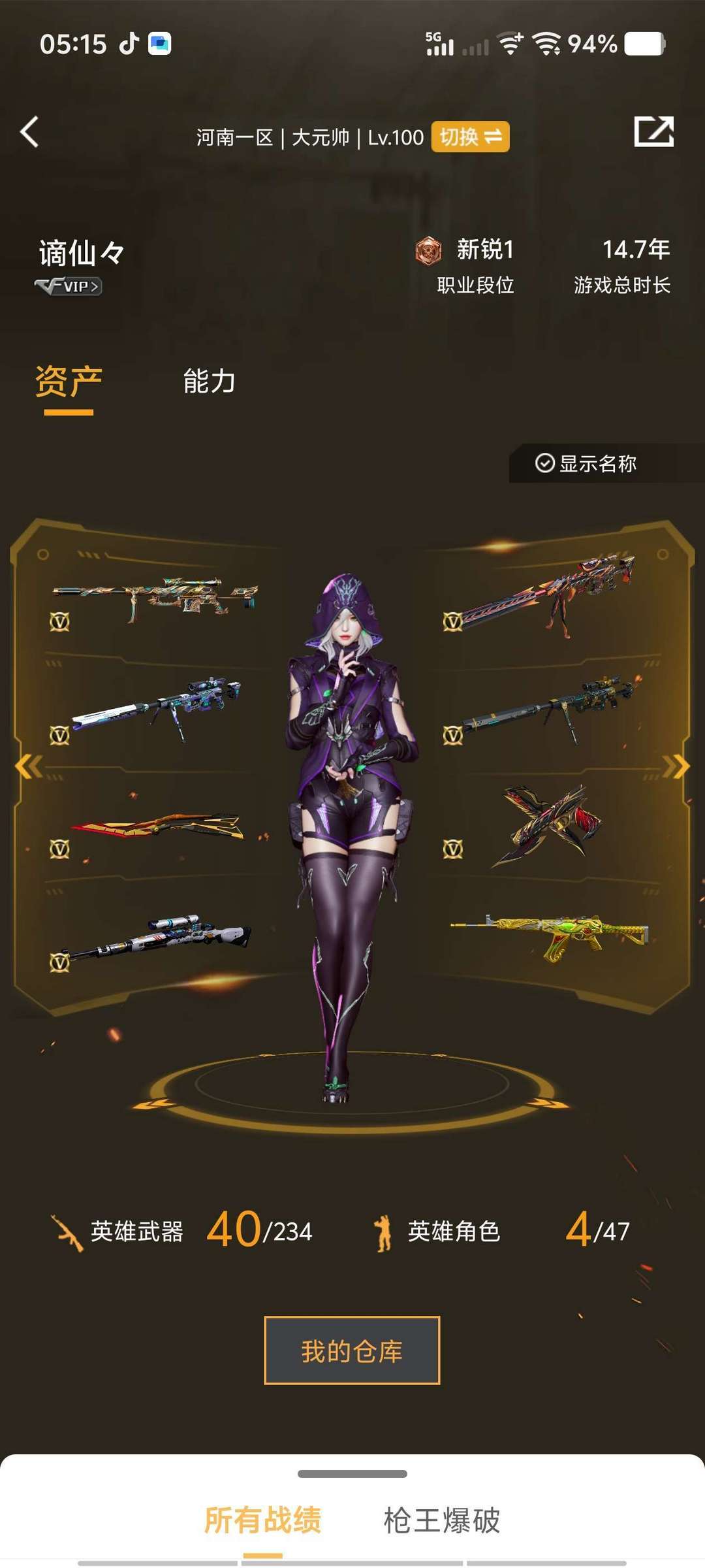 【可排位】【英雄:47 王者:12】魅影♉烟雾弹-竞技荣光♉王者之怒-觉醒版♉AK47-火麒麟♉详看描述