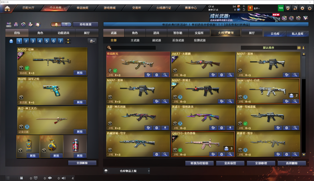 【可排位】怀旧装备75v可排位双幻神M200+王者幻神白虎qbz金色蔷薇HK417朱雀4音效王者之武势全装号生