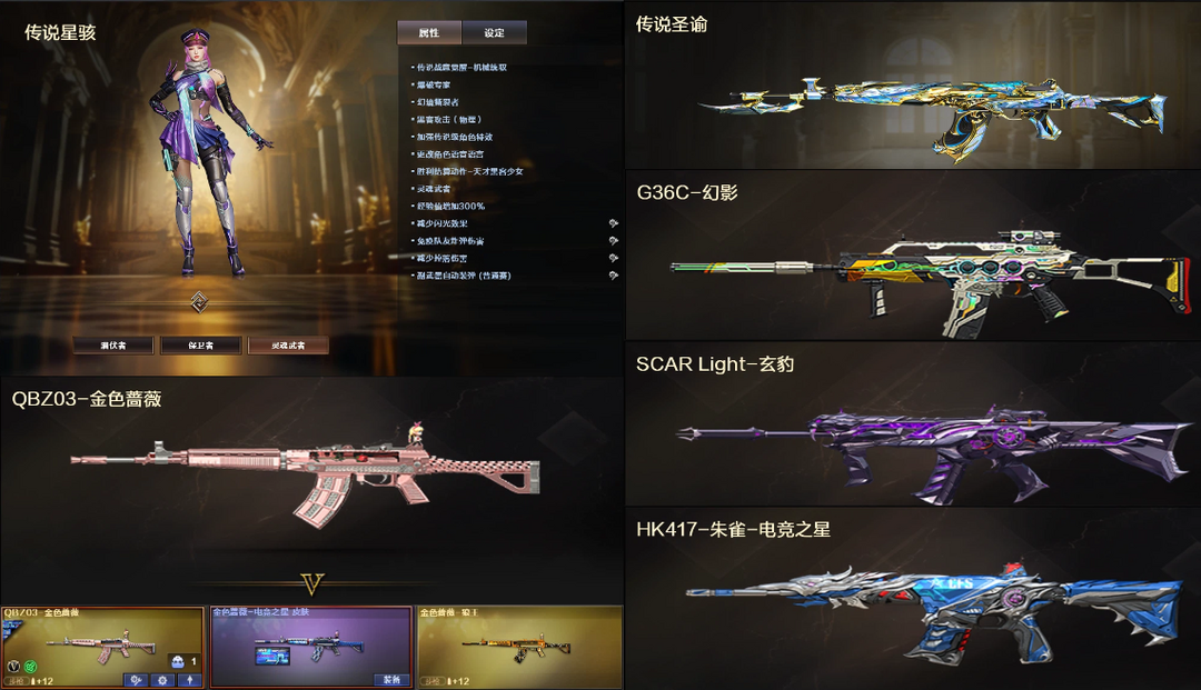 【可排位】传说幽瞳光耀☎幻神5皮女团星耀音效卡☎QBZ蔷薇白虎星神裁决竞技+火魄☎3柯尔特USP+鲨臂☎鹰琉璃