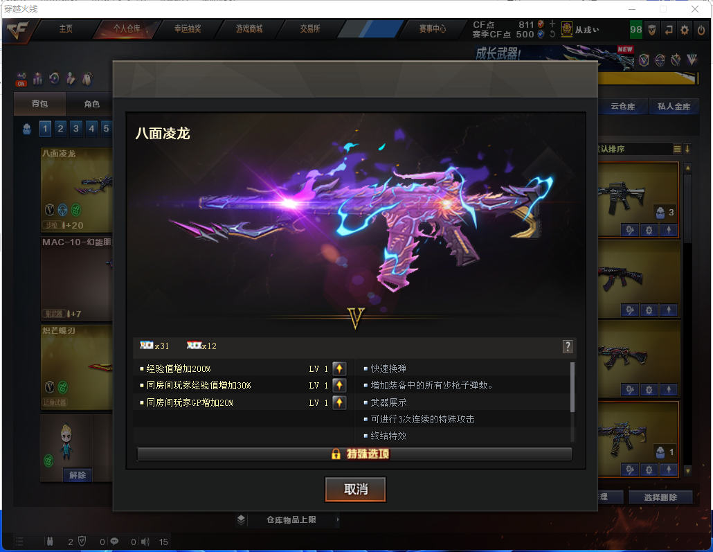 【不可排位】生化炽芒蝶刃♉满氪满配八面凌龙♉幻影猎人♉14个生化皮♉传说艾莉沙♉生化背包♉不退包满榴弹无6盘6烈