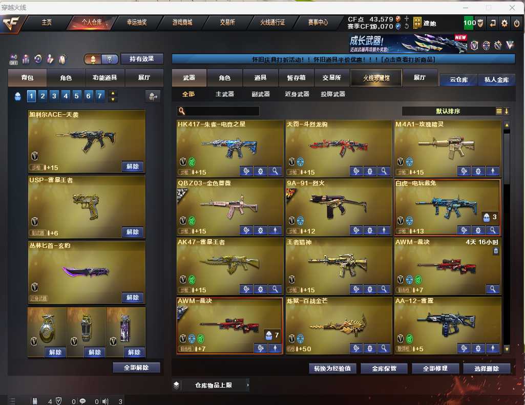 【可排位】神威莲华+天凌︱艾丽莎︱双蝴蝶刀+国王狮子︱六烈盘蝴蝶︱生化满皮肤︱天戎加利尔g36c白虎