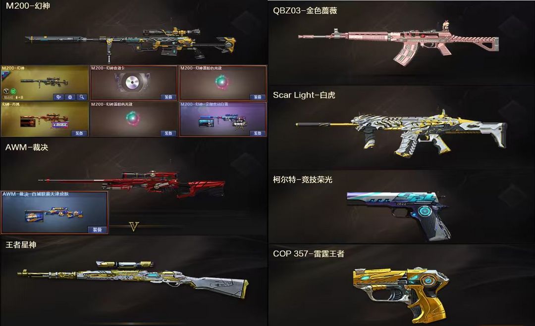 【可排位】枪4北部冥王玄豹百战金芒G36天戎幽瞳艾丽莎幻神6皮音冠特usp4科特7星神套裁决套白虎套蔷薇套