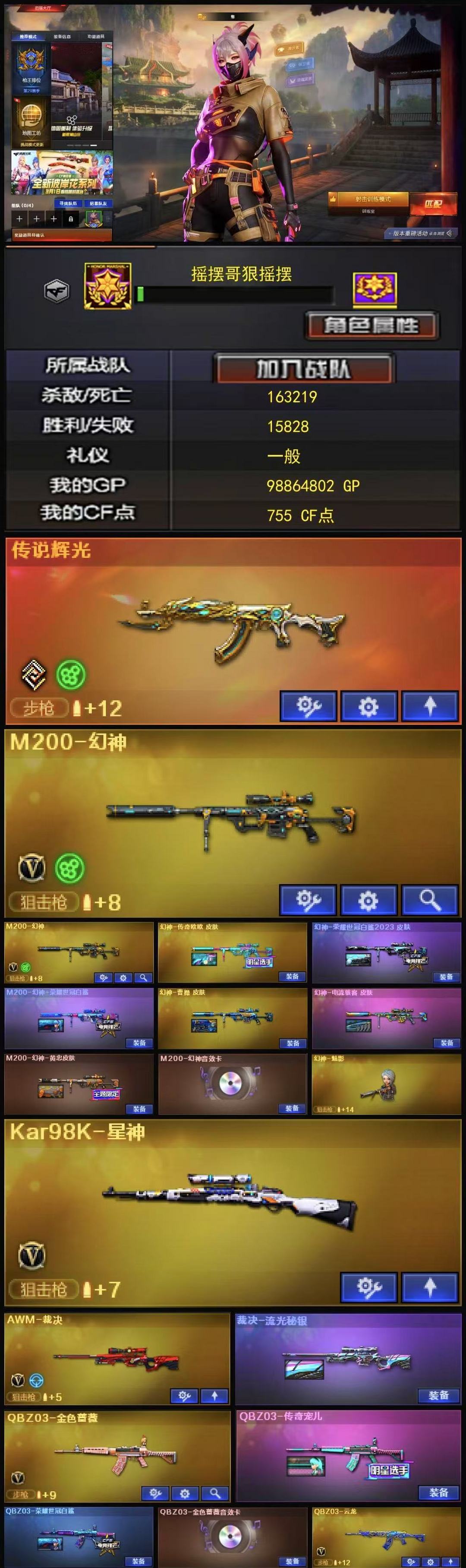 【可排位】枪王2【怀旧服】❤M200幻神CFS2022皮肤幻神音效卡朱雀白虎王者蔷薇六烈龙四防角色幻神三套