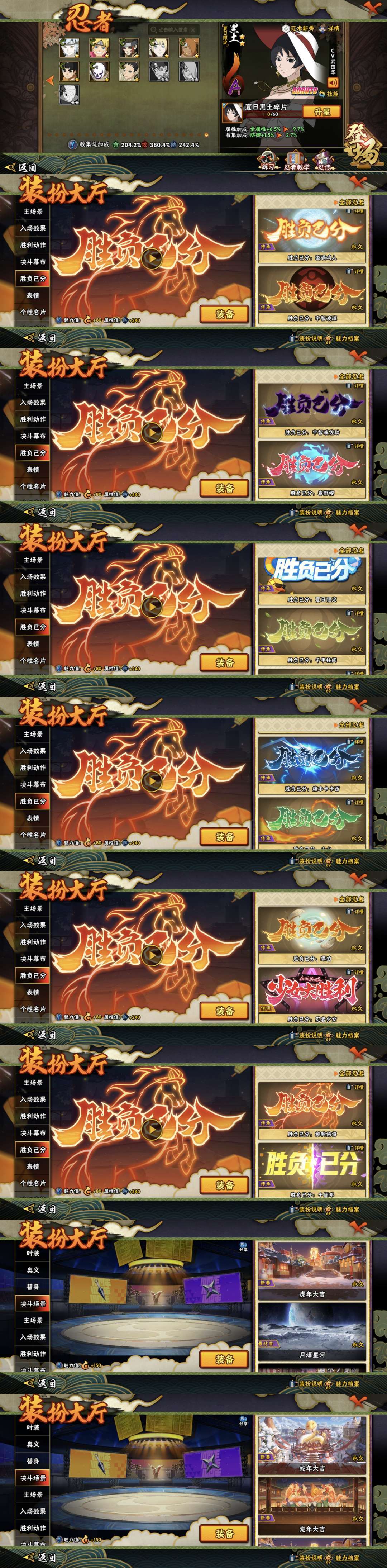 【账号详情】 忍者 440忍者 57S✨直购点券忍者全✨千元阿飞✨青春哥✨惊门凯✨三忍之师日斩✨百机蝎✨晓创生蝎✨鲛肌融合鬼鲛✨晓创生飞段✨黄土✨四尾鸣人✨暴怒带土时装✨鸡翅佐助✨面麻斑之附身✨忍战天天✨忍战卡卡西✨元气卡卡西全套✨神驹阿斯玛全套✨爱情哥✨新春止水全套✨新春水门✨新春我爱罗全套✨侠影照美冥时装✨泳装照美冥时装✨漂泊再不斩时装✨达鲁伊✨三船时装✨青年三船✨侠影纲手全套✨妖怪纲手✨漂泊二代时装✨侠影兜全套✨漂泊六道全套✨泳装小南✨新春小南时装✨漂泊小南全套✨绝✨黑绝✨新春大蛇丸全套✨新春鼬时装✨夏日鼬全套✨新春迪达拉全套✨恶灵飞段✨卑留呼全套 VIP V15 装扮 魅力值70级 时装 全时装 通灵 全通灵 奥义 稀有直购奥义多 胜利效果 全有,神驹佑将,漂泊,忍者少女,卡卡西,止水,夏日,柱间,佐助,小樱,鸣人,斑,水门 稀有称号 圣诞老人,明日之星动态称号 决斗幕布 掠影星河 炽焰星天 胜利动作 稀有多 入场效果 全有 决斗场景 全有 战力 排行榜第二 4500万战力