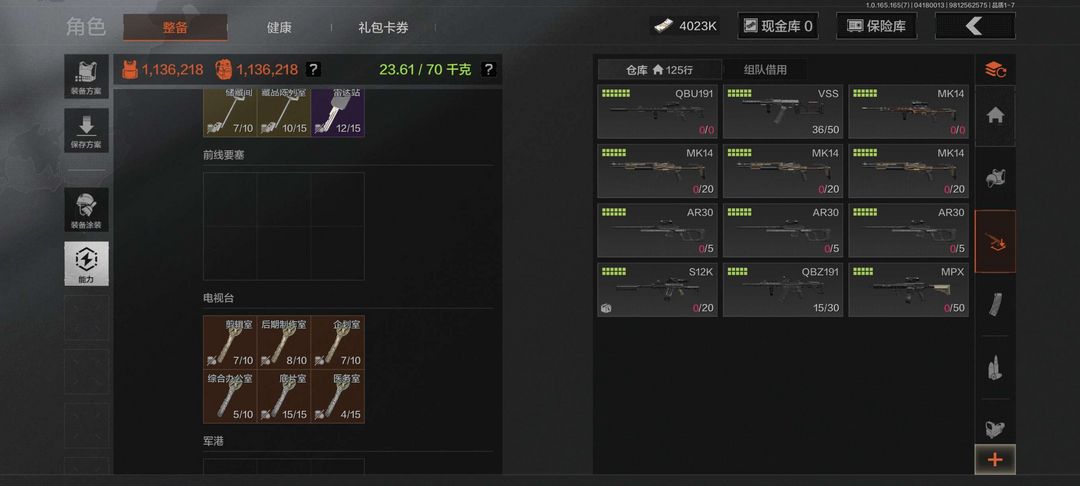 有400k可供猛攻玩家使用,护航首选,仓库内的全护甲和满改枪可使用,有t,禁止使用保险库内东西