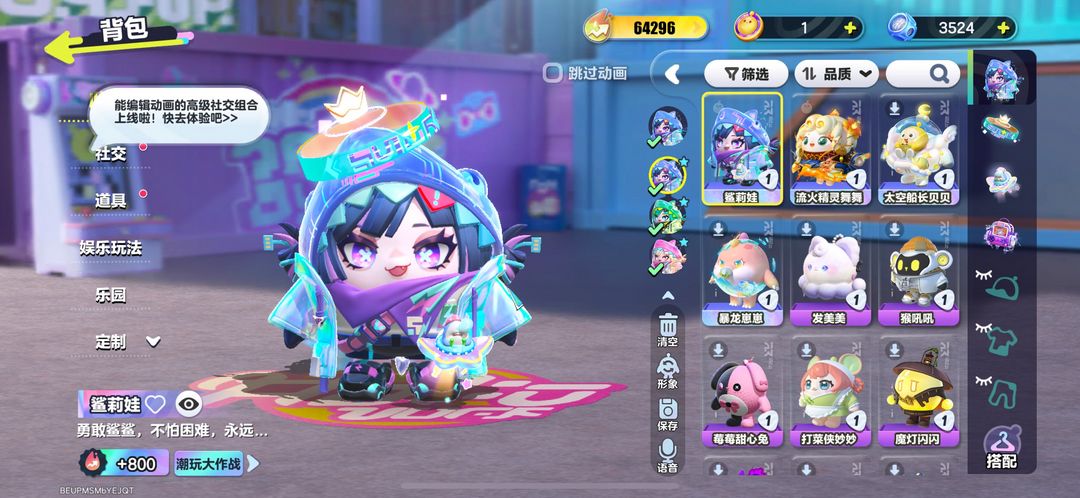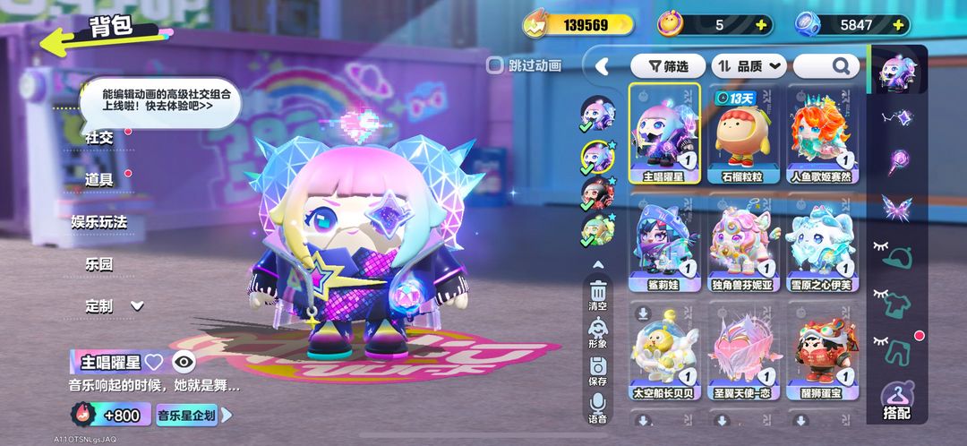 禁言/13至臻/主唱曜星/鲨莉娃/人鱼歌姬赛然/雪原之心伊芙/醒狮蛋宝/独角兽芬妮亚/小羊/兔兔车/