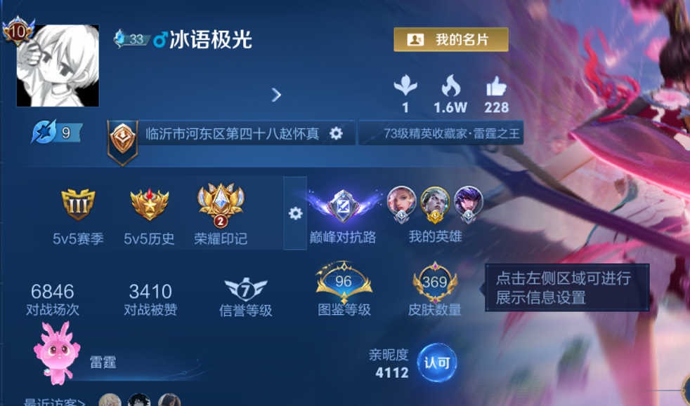 - 巅峰榜排名:1名/1名/1名/1名/1名|对抗路/打野/中路/游走/发育路