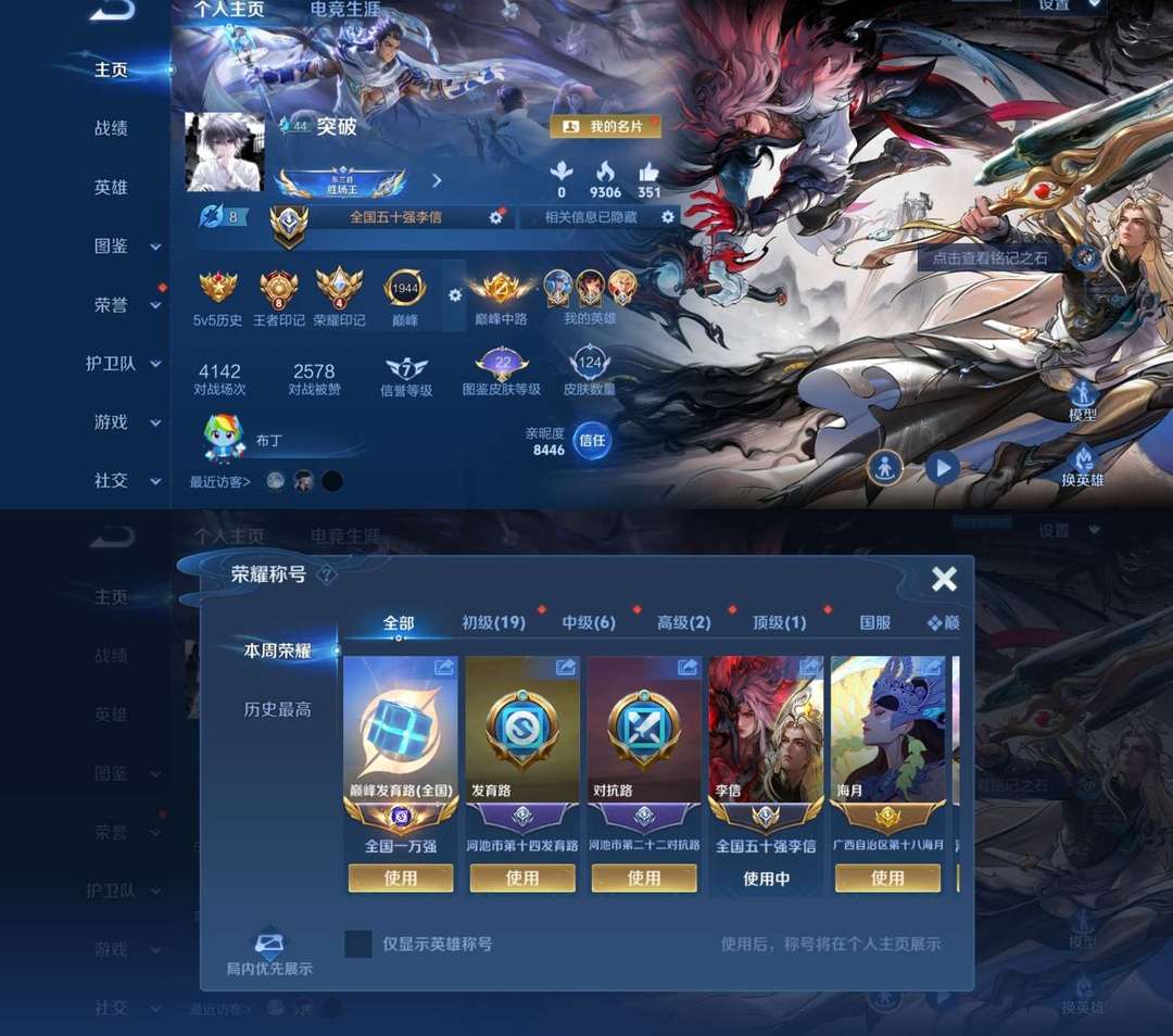 - 巅峰榜排名:8923名|发育路