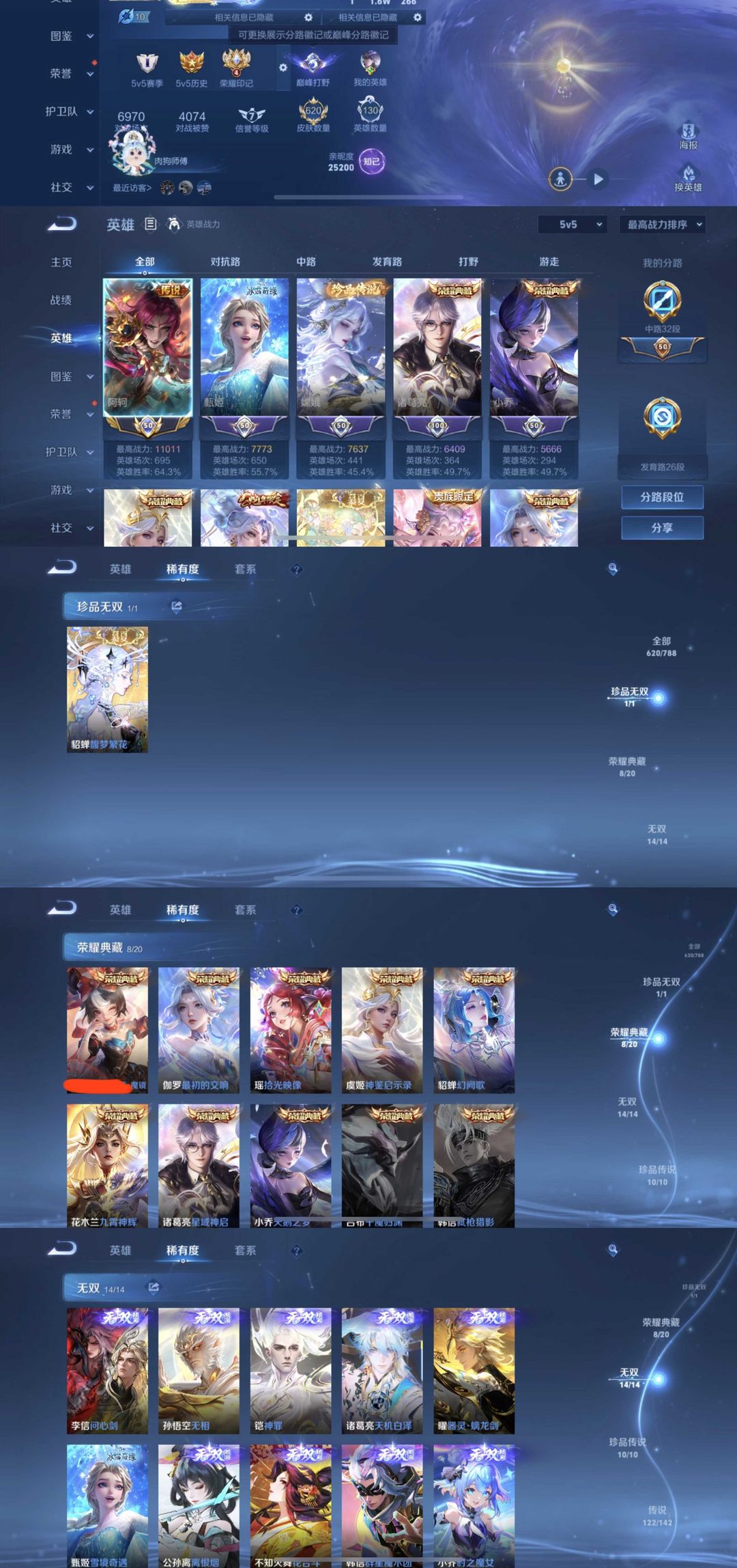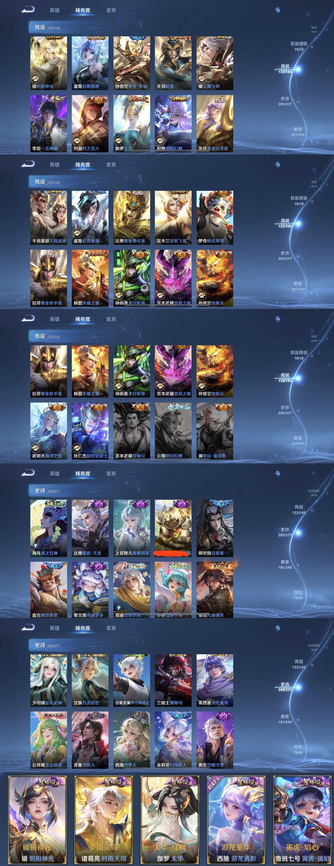 时间到了还登录白玩或者顶号全部改密拉黑处理永不解除,顶号机器会秒禁玩改密,顶号不仅拉黑还没得玩,赚三两块不容易,请理解谢谢。 ❤❤❤❤❤❤❤❤❤❤❤❤❤❤❤❤❤❤❤❤❤ 请勿开挂,挂机,送头,骂人,撤单后游戏等如有违规永久拉黑永不解除。 重置二级密码不要费劲了,号主每天都会上号查看,多行不义必自毙,人在做天在看,多做好事多自律,少做缺德事。 该号英雄130个皮肤620个,珍品无双1个,典藏9个,无双14个,珍品传说10个,星传说5个,传说122个,史诗205个,祝您游戏愉快~