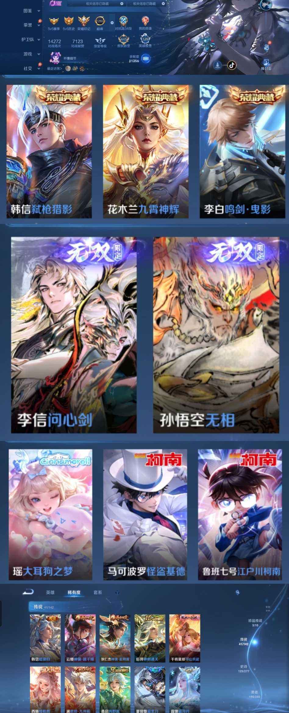 时间到了还登录白玩或者顶号全部改密拉黑处理永不解除,顶号机器会秒禁玩改密,顶号不仅拉黑还没得玩,赚三两块不容易,请理解谢谢。 ????????????????? 请勿开挂,挂机,送头,骂人,撤单后游戏等如有违规永久拉黑永不解除。 重置二级密码不要费劲了,号主每天都会上号查看,多行不义必自毙,人在做天在看,多做好事多自律,少做缺德事。 该号英雄129个皮肤445个,典藏3个,无双2个,珍品传说3个,星传说3个,传说41个,史诗125个,祝您游戏愉快~