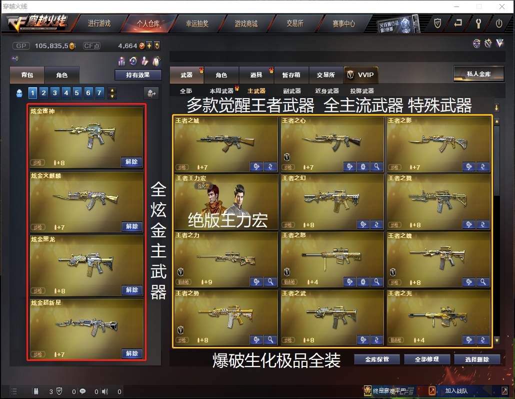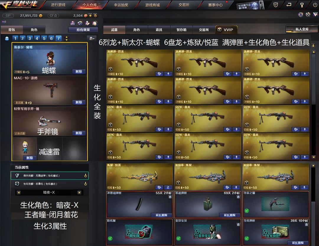 - 账号类型:双全装|爆破号|生化号|稀有武器