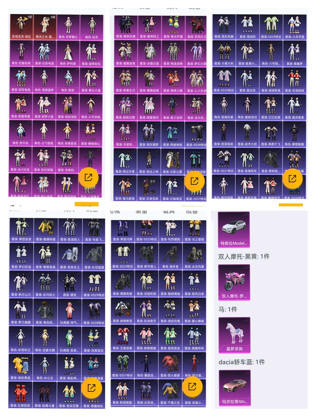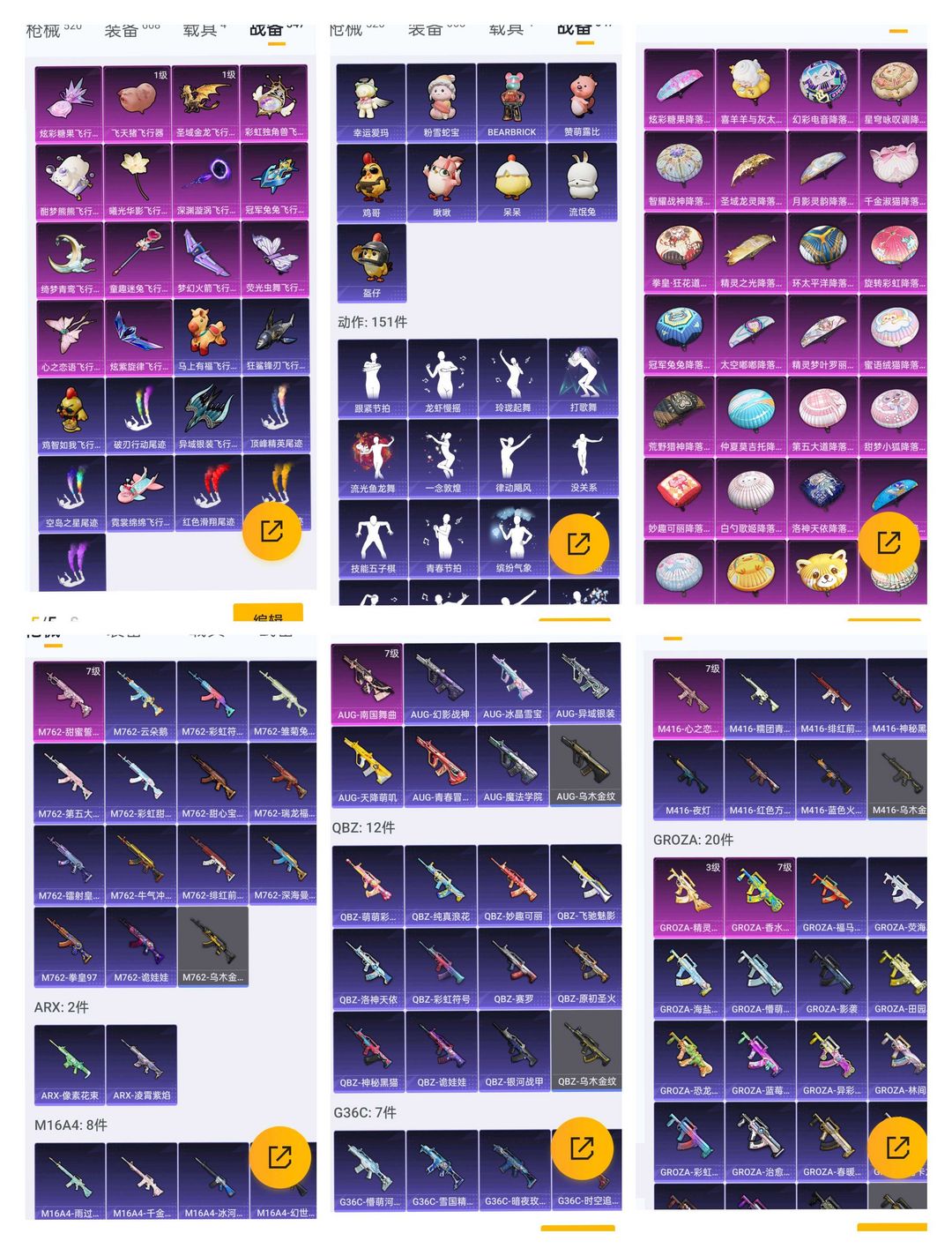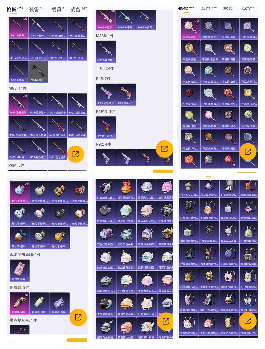 该号女号,请勿分解枪械,请勿开挂,请勿坐挂车谢谢各位宝宝~ 套装363套,红色2套,粉色43套 枪械520个,特效枪22个,几乎全满级 装备668个,三级头81个,三级包98个 载具皮肤4个 滑翔尾迹25个,伙伴9个,动作151个 祝您游戏愉快宝宝们~