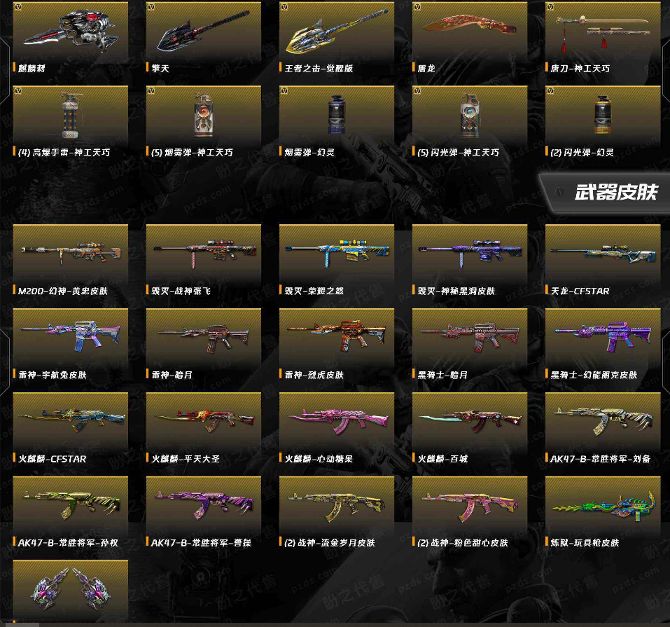 - 账号类型:双全装|稀有武器|爆破号|生化号