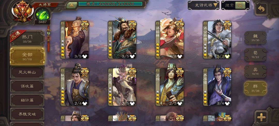 - 史诗武将数量