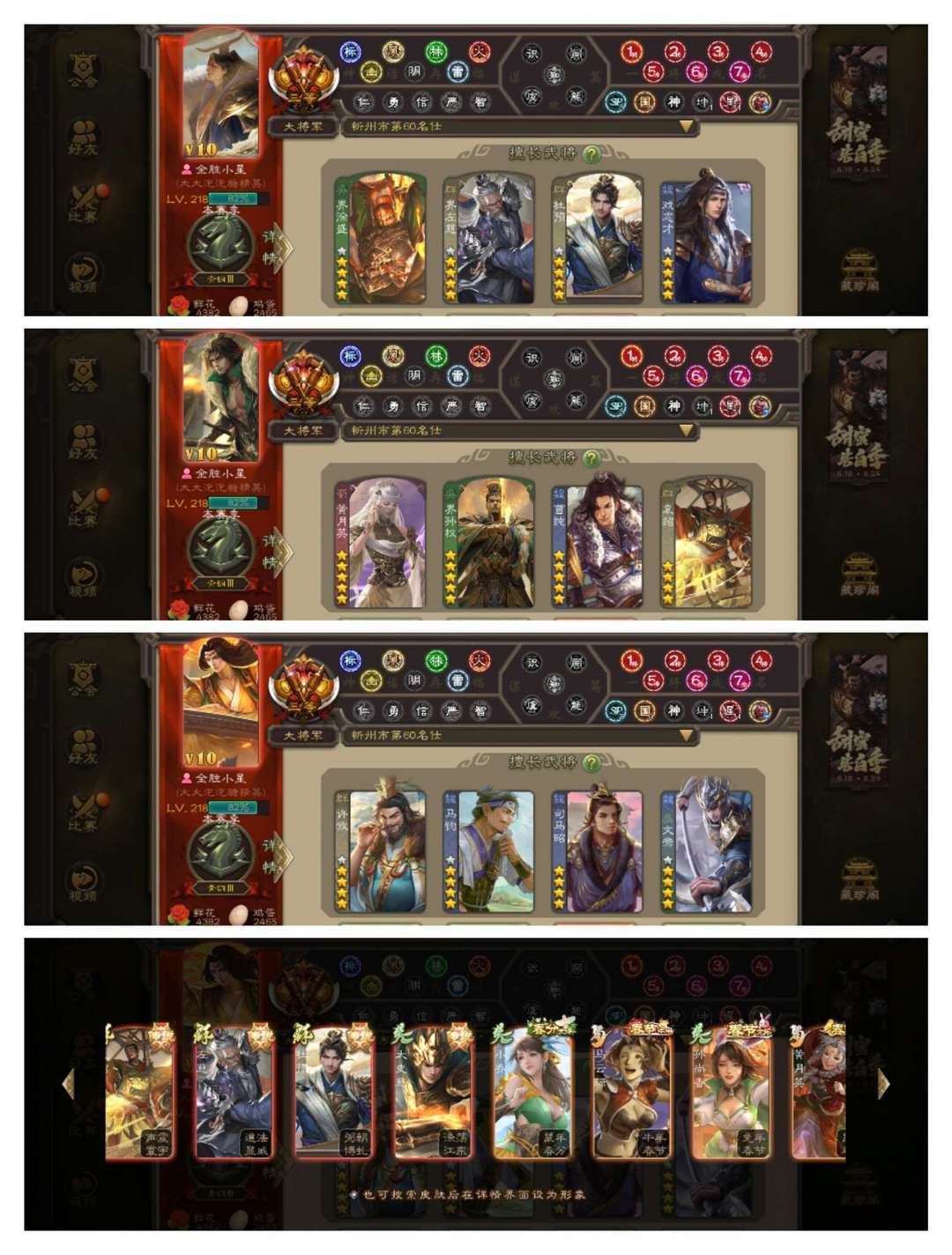 官方三等大将军,有卡,VIP10! 3五星炎龙:动界孙权动黄月英,曹纯! 9四星玉龙:回廊双形态动杜预,回廊动界左慈,回廊动界徐盛,金许攸金马钧,文鸯司马昭戏志才神赵云! 40史诗武将,金界钟会金张让,骆统郝昭等! 31动皮90金皮195国战皮肤!