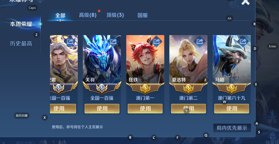 1、用户需遵守租号秀秀用户协议,文明游戏,如租用账户,在游戏过程中辱骂,发广告,散发国家禁止之言论.LOL不可删除号主好友。(如有押金将扣除赔付给卖家)租号秀秀有权永久冻结买家账户,且需赔偿所造成的账号损失,租号秀秀保留对用户法律起诉之权利。