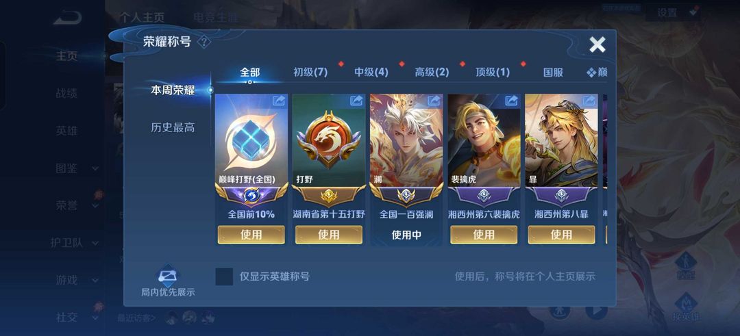 - 段位:绝世王者