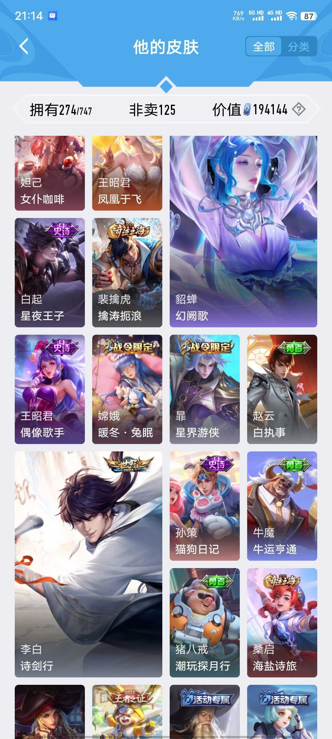>>>>>>毁号,涉及毁坏虚拟财产罪及计算机安全罪,请文明游戏素质游戏,让我们共建美好租号平台>>>>>> 本游戏账号: ,英雄多,皮肤多。典藏皮肤4个,感受典藏皮肤带来的优质体验快感,FMVP皮肤7个,尽情享受FMVP皮肤带来的主角光环, 私人所属英雄皮肤有:伽罗 最初的交响||貂蝉 幻阙歌||瑶 拾光映像||夏侯惇 无限飓风号鲁班七号 江户川柯南||小乔 音你心动||橘右京 枫霜尽||艾琳 觅芳踪||马超 琥珀纪元||云缨 幻光神枪||伽罗 太华||伽罗 炽翼辉光||兰陵王 默契交锋||兰陵王 影龙天霄||亚瑟 追逃游戏||马可波罗 妄想实况||马可波罗 怪盗基德||宫本武藏 地狱之眼||李信 一念神魔||李信 山海·炽霜斩||诸葛亮 鹤羽星尊||妲己 愿照·众生和||上官婉儿 神器·万象笔||上官婉儿 妄想奇谈||孙悟空 齐天大圣||孙悟空 地狱火||李元芳 飞鸢探春||安琪拉 酷洛米之心||安琪拉 追逃游戏||桑启 鸣野蒿||嫦娥 器灵·落星盏||墨子 黄金天蝎座||王昭君 乞巧织情||王昭君 映山客||后羿 黄金射手座||夏洛特 浮生妄||虞姬 云霓雀翎||虞姬 愿照·岁时盈
