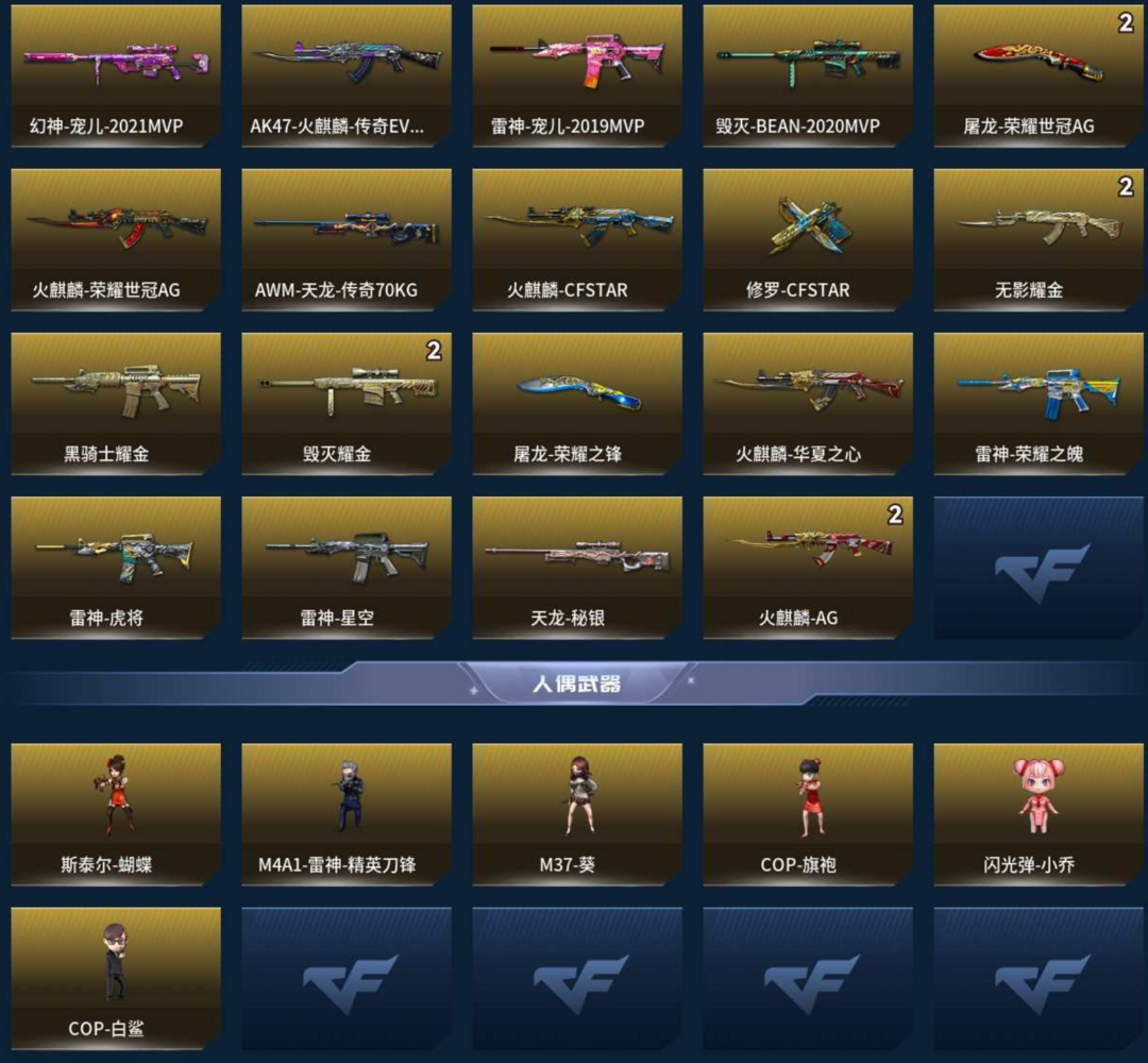 - 账号类型:爆破号|双全装|稀有武器|生化号